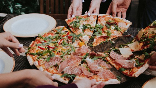 Der serveres pizza samt øl, vin og vand undervejs.